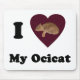 "I Heart My Ocicat" design, featuring an adorable, chocolate-spotted Ocicat comfortably nestled within a velvet heart.