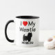 This custom "I Love My Westie" mug is perfect for anyone who loves a Westie dog, also known as West Highland White Terrier, just change to your own dog's name.