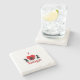 The coasters are gorgeous, a quality feel and heavy weight. They look like a precious archeological find. A rustic stone juxtaposed with a modern floral black and white print. I like the way the print goes slightly imperfect on the cut stone edges giving them a kind-of natural beauty.