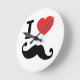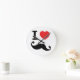 I heart twirly Moustache Round Clock