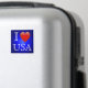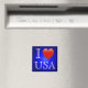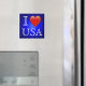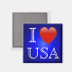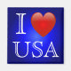 White letters and a red glass looking heart on a rich blue background on this square refrigerator magnet. Show your pride in the United States of America with this dramatic refrigerator magnet.