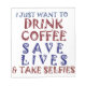 Embrace the joy of coffee, compassion, and fun with our “Sip, Save, Smile: Coffee, Kindness, and Selfies” design. This vibrant artwork features the playful text: “I Just Want to Drink Coffee, Save Lives, and Take Selfies.” It captures a lighthearted spirit, perfect for coffee lovers and those who enjoy spreading kindness and positivity.