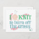 A typography style postcard for knitters who know how relaxing their craft can be. The knitting saying reads "I knit to burn off the crazy" and is written with stylised typography in soft shades of blue and green. The wording is decorated with pink heart shaped vines, knitting yarn and needles. Please browse our store for matching and coordinating items.