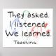 Thank a teacher, give a gift poster. Teaching wisdom poster says "They asked. I listened. We learned."