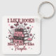 Vibrant, colourful design featuring a stack of books with flowers, butterflies and mushroom. The colourful text reads: "I like books more than I like people". This design is available on a wide variety of products.