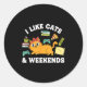 I Like Cats And Weekends Lover Funny Cozy Gamer Qu Classic Round Sticker
