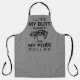 "i like my butt rubbed and my pork pulled" long grey bistro chefs bbq cooking apron , with pig cuts silhouette diagram