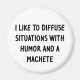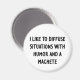 For the sarcasm lover in all of us. Check out this witty “I Like to Diffuse Situations with Humour and a Machete” design on apparel and gifts.