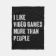 I Like Video Games More Than People Funny Gamer Ga Fleece Blanket