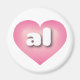 This magnet contains a pink heart with a white-washed center containing the bold, white, rounded, lower case letters al, a playful abbreviation for Alabama, the yellowhammer state. Roll Tide!