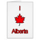 A variation on the I Heart theme. The image uses a Canadian maple leaf in place of the normal heart symbol. This design says "I (Canadian maple leaf) Alberta. The lettering and leaf symbol are red with a black border or stroke. This makes a great gift for anyone who is a proud Canadian and Albertan.