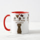 Whimsical and funny chocolate lovers mug, including a chocolate martini, assorted chocolates, and a chocolate lab dog, all mouse drawn vector art.
