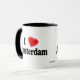 I love Amsterdam! Are you from Amsterdam, Netherlands? Do you have a friend or family member who loves Amsterdam, Netherlands? If so, this "I Love II" mug that shows love for Amsterdam is exactly the gift that you're looking for! The design features the letter "I" in black lettering with a red heart on the top and "Amsterdam" in black lettering on the bottom.