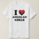 Embrace the spirit of Angola with this bold 'I Love Angolan Girls' t-shirt. Featuring a vibrant heart with the Angolan flag, it celebrates the beauty and allure of Angolan women. This tee is perfect for showing pride in Angola's rich culture or as a unique gift for anyone enchanted by the diverse and captivating African continent.