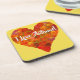 I Love Autumn!—Red Aspen Leaf Heart 1 Coaster