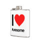 The flask itself is fine. It’s a cheap flask, obviously bought in bulk, however am prepared to overlook that. Given that it is a personalized item, I would have liked to have seen gift boxing instead of the generic packaging. Terrible printing, and/or quality. It’s a cheap, tacky vinyl. It is not cut straight and is also applied in a way that it is overhanging the bottom, causing the glue to catch on items and it will eventually roll and tear, damaging the wrap.