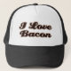 This product was made for any bacon lover! It features a bacon swirl background, with the text "I love bacon" on top.