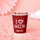 Bacon saying with letters created from bacon strips. Custom background colour. Custom text on both sides.