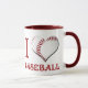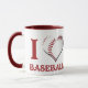 Baseball fan coffee mug .. ideal gift for the ultimate baseball fan .. saying I love baseball.. with heart effect