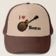 "I Love Bluegrass" Trucker Hat with mandolin graphic - adjustable (TAN and BLACK)