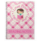 Pretty pink heart background has I Love Books quote on a reading notes journal with a pretty girl holding a pink book.