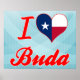 Great I Love Buda, Texas gift with a heart shaped flag of Texas. This I Love Buda, TX and other gifts for anyone from Buda, Texas or moving there. God Bless America and God Bless Buda.