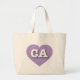 This tote bag features a lavender heart containing the bold, white, upper case letters CA, the official abbreviation for the state of California, the golden state.