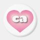 This magnet features a pink heart with a white-washed center containing the bold, rounded, white lower-case letters ca, a playful version of the abbreviation for California, the golden state.