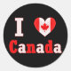 I Love Canada Maple Leaf Heart Classic Round Sticker