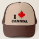 I Love Canada trucker hat! Featuring A red Canadian Maple Leaf as the heart in the phrase, "I Love Canada"! A great Christmas and Holiday gift idea for the true Canadian!