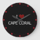I Love Cape Coral wall clock. Classic white lettering and red heart on black background.