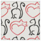 I Love Cats! (Black and Red Outlines on White) Fabric