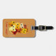 I was happy with the acrylic tag but it came with a thin leather strap to attach the tag to luggage (like a cat collar). I replaced the strap with a metal ring off of a key ring as the leather strap would come undone or break easily as luggage is sometimes handled without much care by airlines. Printing is great. Colours and positioning of the design I put on the tag were perfect. Very pleased.