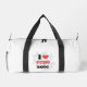 I actually had been searching other sites for a duffle gym bag and I couldn't find any. This one is just what I was looking for with all the features. The inside zip pocket, the outside mesh pocket and LOTS of room inside. Love the printing. Really like how the floral print turned out.