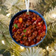 Funny food pun Christmas holiday ornament. Realistic photo of a bowl of chilli with the funny quote, "I love chillin with you this Christmas."