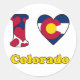 ik houd van Colorado sticker. I heart Colorado . De stickers zijn in alle us states verkrijgbaar, ook op diverse producten. Het hart is de vlag van Colorado. De vlag is in de kleuren rood, wit en geel en blauw.