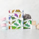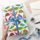 Original fine art pattern of colourful little Pre-Historic dinosaurs including triceratops, brachiosaurus, tyrannosaurus rex and others against a light background by artist Carolyn McFann of Two Purring Cats Studio printed on quality, customisable (background colour can be changed, if desired) wrapping paper. Great for holidays, kids' birthday or for any occasion for anyone who loves paleontology!