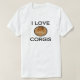 A cute round circle featuring a photograph of a cute little corgi bunny butt and her legs outstretched behind her with the words I LOVE CORGIS. Corgi owners, mum and dads alike will like this pretty corgi gift.