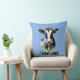 A cute, funny cow throw pillow, featuring a black and white Holstein wearing a bright yellow sunflower on its head. This floral farm animal design adds a charming rustic touch to any farm themed kids room or as a funny novelty gift for an adult who just loves cows.