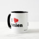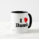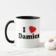 I love Damien! Is your name Damien? Do you have a wife, girlfriend, female family member or female friend who you know loves you? Or do you have a husband, boyfriend, male family member or male friend named Damien whom you love deeply? If so, this "I Love" mug is exactly the gift that you're looking for! The design features the letter "I" in black lettering with a red heart on the top and "Damien" in black lettering on the bottom.