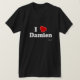 I love Damien! Is your name Damien? Do you have a wife, girlfriend, female family member or female friend who you know loves you? Or do you have a husband, boyfriend, male family member or male friend named Damien whom you love deeply? If so, this "I Love" shirt is exactly the gift that you're looking for! The design features the letter "I" in white lettering with a red heart on the top and "Damien" in white lettering on the bottom.