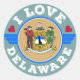 I Love Delaware State Map and Flag. Taking its inspiration from the state flag, this design features a two-tone blue and beige colour scheme, plus red hearts. This frames the state flag centerpiece, with a silhouette of the state map on the shield. With cool distressed typography featuring the phrase 'I LOVE DELAWARE'.