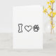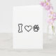This card shows a simple black-and-white design that reads like “bone, heart, paw” in a row across the center. The bone icon is on the left, drawn in black with smooth rounded ends. In the middle is a heart shape in the same black outline, showing love and affection 💘. On the right is a paw print, and a few short lines around it make it look like it’s happily showing up or waving hello. There’s no background scene, just a plain white space that keeps all the focus on the three symbols. There isn’t any written text on the front, so the message comes through only by the pictures. It feels sweet and pet-loving, like a little Valentine from someone who adores dogs ❤️.
