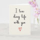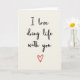 This greeting card feels like a meaningful note you’d want to keep. The background is a warm off-white with a soft paper texture that sets a calm, inviting tone. Centered across the card, the message “I love doing life with you” is written in flowing black script that looks like real handwriting. The letters vary slightly in thickness, adding a personal and sincere touch. Just below the words sits a hand-drawn red heart with gently uneven, brush-style edges. The rich red color stands out beautifully against the neutral background and pairs well with the black lettering. With no extra images to distract from the message, the focus stays on love, commitment, and togetherness. This card is a thoughtful choice for a partner or close friend, and a heartfelt way to share how much you value walking through life side by side.