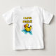 Baby, kids, and toddler T-shirts, long sleeve tees, sweatshirts, football bodysuits, organic bodysuits, sleeveless dresses, hats, rompers, and other baby apparel with a cute yellow duck splashing in the blue puddle and yellow text that reads I Love Ducks!