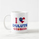 Great I Love Duluth, Georgia design with Georgian Flag in the shape of a heart. Great gift for anyone from Duluth, GA. This and more Georgian city, Duluth gift products at CityShirtsUSA.com