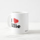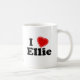 I love Ellie! Is your name Ellie? Do you have a husband, boyfriend, male family member or male friend who you know loves you? Or do you have a wife, girlfriend, female family member or female friend named Ellie whom you love deeply? If so, this "I Love" mug is exactly the gift that you're looking for! The design features the letter "I" in black lettering with a red heart on the top and "Ellie" in black lettering on the bottom.