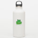 * A frog is sitting on a lily pad.
