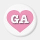 This magnet features a vibrant pink heart containing the bold, white, upper case letters GA, the official abbreviation of Georgia, the peach state.