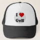I Love Golf Hat. This hat is decorated with a golf ball and the words "I (heart symbol) Golf." A great gift idea for your favourite golfer. Available in 11 colours.